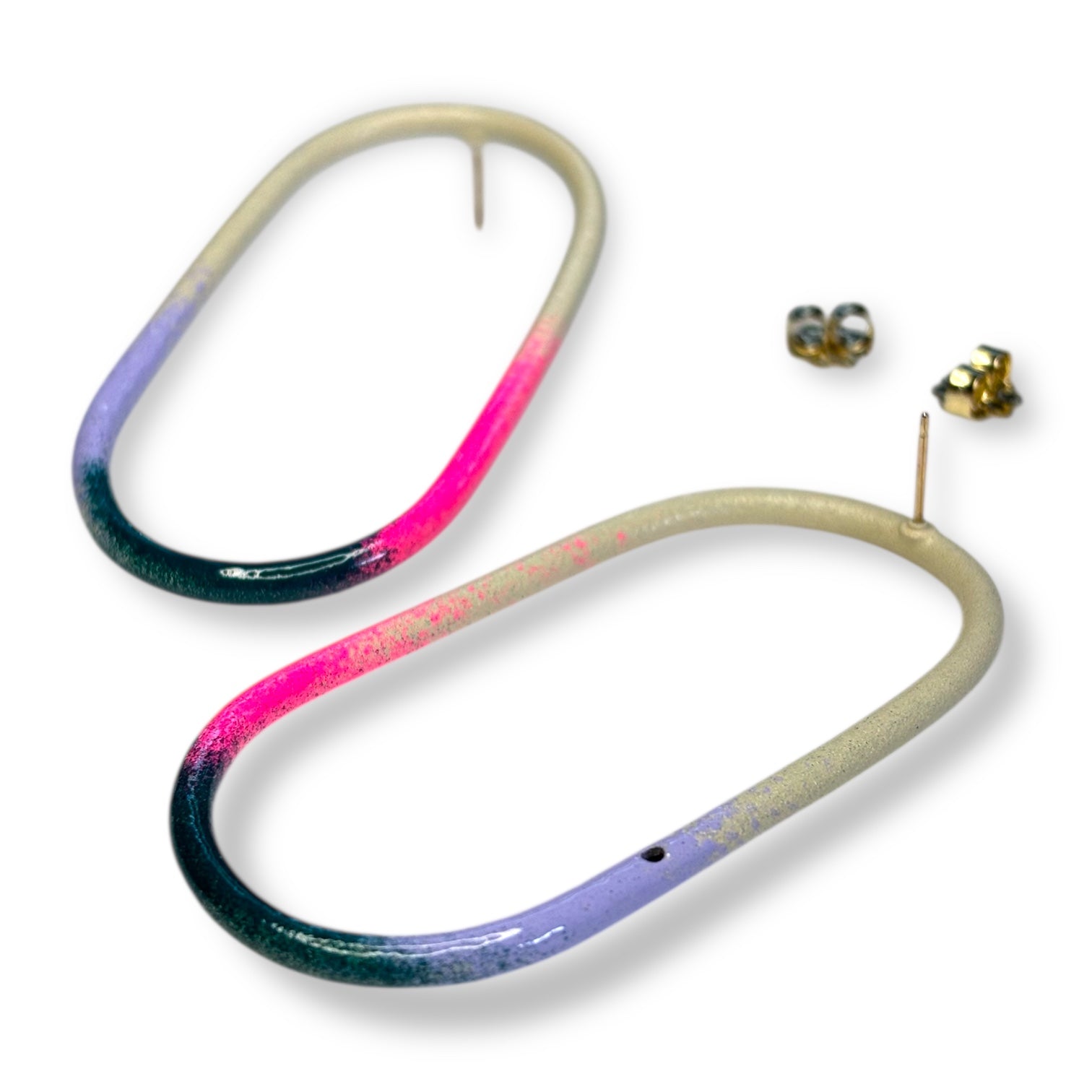 Our enameled earrings are made by hand, so that each pair is unique and may vary slightly from the images in this listing. This is one of the reasons our community loves our designs, and we think you will too! We use powder coating in a variety of colors and textures that are fired onto the surface of brass that has been hand-formed, soldered, and cleaned before making its way to your corner of the universe.