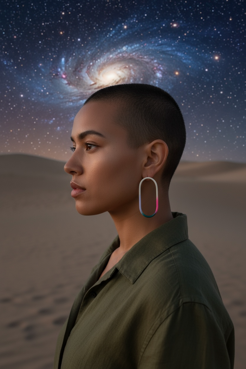 Inspired by the shape created by two black holes merging, the ellipse is an elegant form with gravitational potential. These earrings are a fresh, cosmic twist on our classic Ellipse design. Despite their striking appearance, each pair is unexpectedly light thanks to the use of metal tubing in its construction.