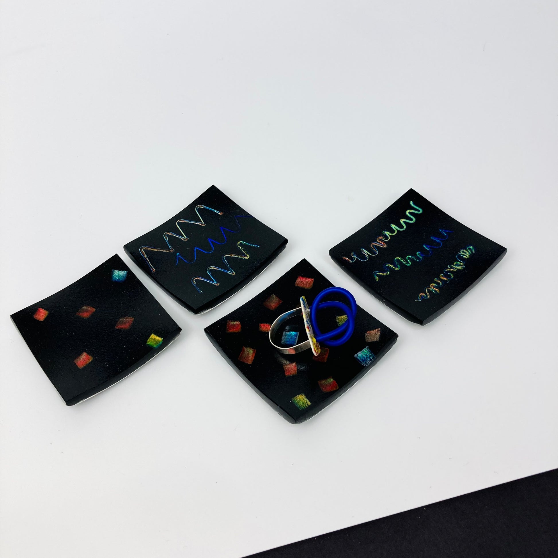 Crafted with the utmost care in our Richmond laboratory, these dishes are works of art. Our Catch-All's capture all things cosmic, ethereal, and metaphysical. Luxurious in appearance, yet pragmatic in function, these pieces can also serve as a sweet jewelry catch for that special pair of earrings or a place setting for your treasured rings.