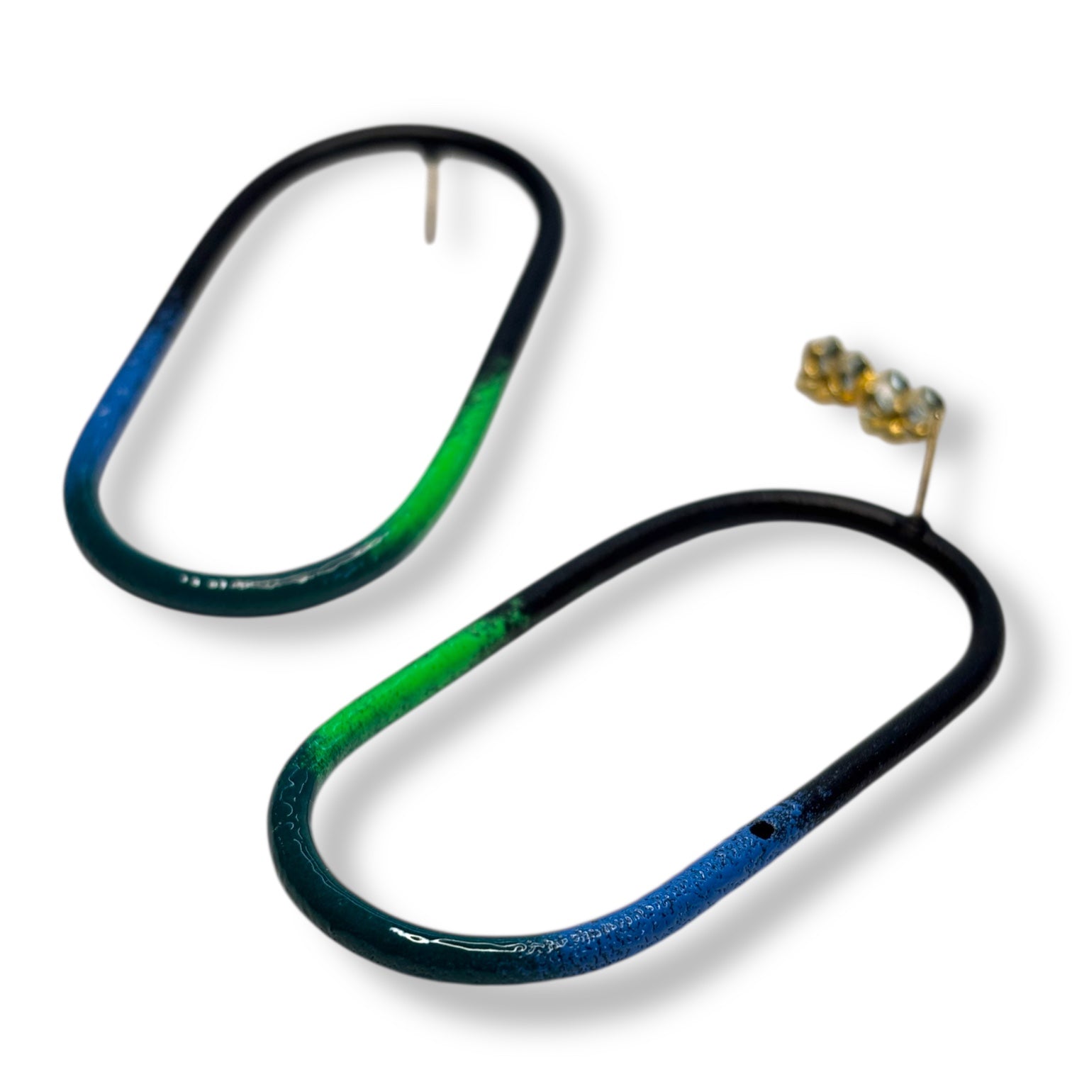 Inspired by the shape created by two black holes merging, the ellipse is an elegant form with gravitational potential. These earrings are a fresh, cosmic twist on our classic Ellipse design. Despite their striking appearance, each pair is unexpectedly light thanks to the use of metal tubing in its construction.
