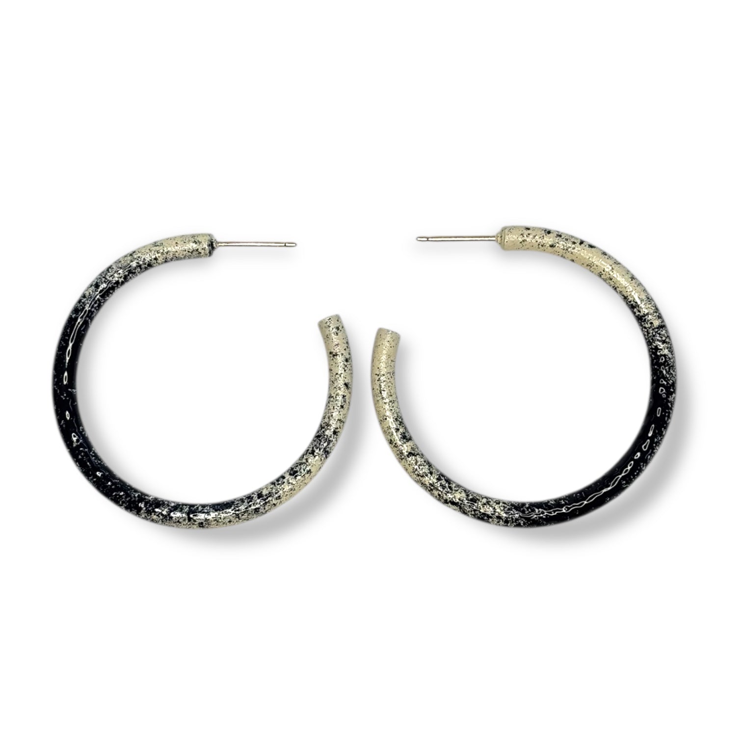 This is our unique take on a classic hoop earring design. These hoops are surprisingly lightweight because they're constructed with metal tubing. Transform your outfit, and your timeline with our Galactic Hoops.