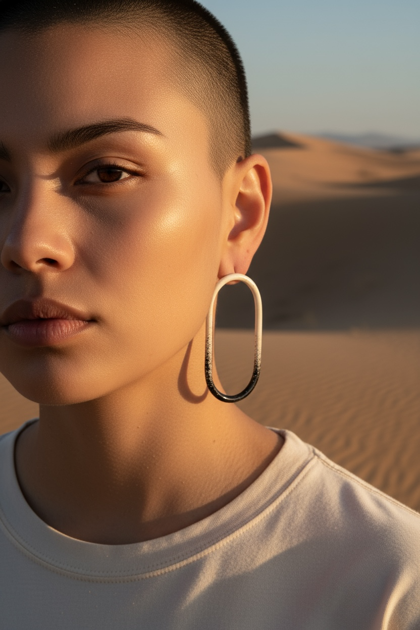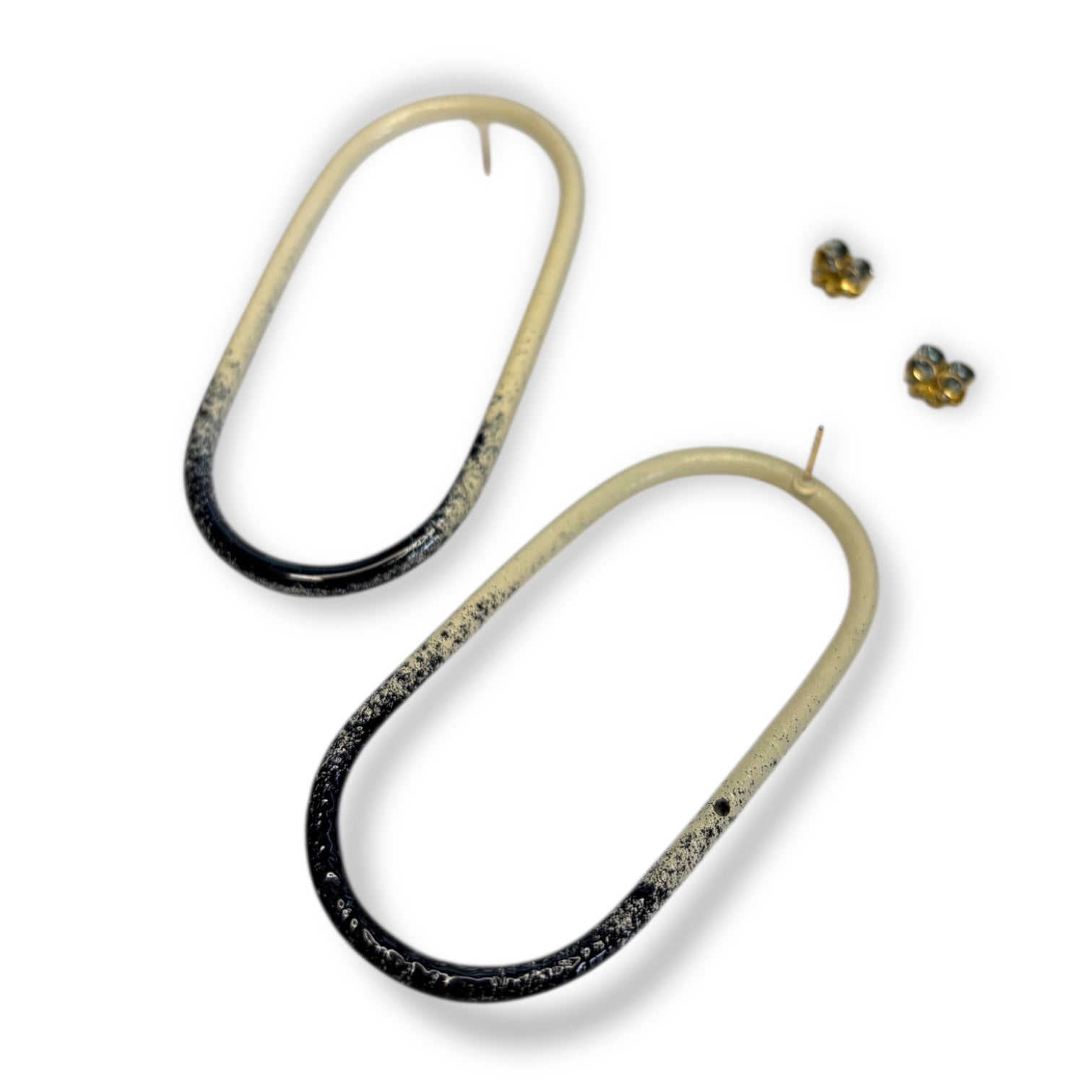 Inspired by the shape created by two black holes merging, the ellipse is an elegant form with gravitational potential. These earrings are a fresh, cosmic twist on our classic Ellipse design. Despite their striking appearance, each pair is unexpectedly light thanks to the use of metal tubing in its construction.